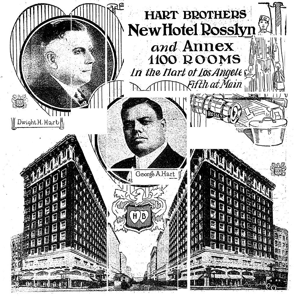 Thank you for posting this interesting piece about the Rosslyn Hotels, which included some surprising information which I had never heard. My Grandfather was Dwight H. Hart, He passed away 15 years before I was born so I never had the privilege of first hand information about the Rosslyns. The hotels were closed and abandoned when I was a baby, so my mother (who was born in the penthouse in 1916) never really talked much about them. I suppose it was hard for her to think about how badly they had declined. But what no one in my family ever mentioned to me was that Conrad HIlton purchased the Rosslyn not long after my grandfather died. If not for your article, I may never have know this important fact.