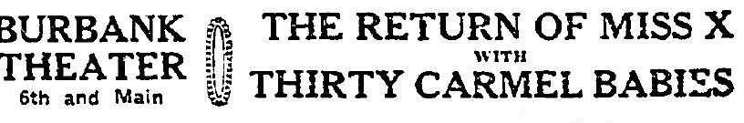 The Burbank Theater on Main Street, which seldom missed the chance to exploit a juicy headline, incorporated the Miss X story into its latest burlesques shows.