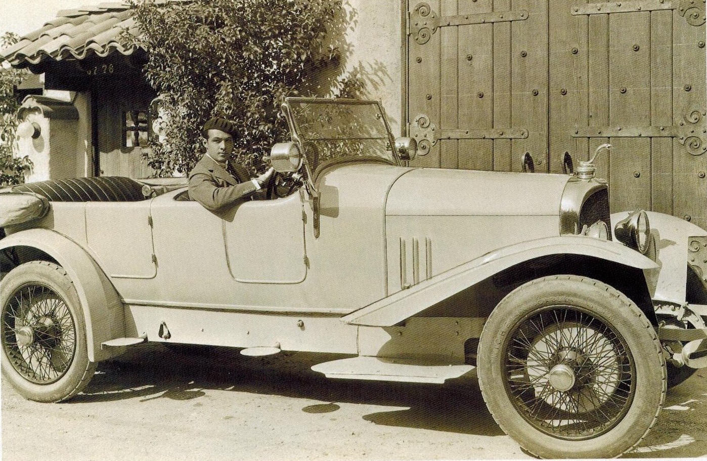Valentino at the wheel of his 1923 Avion Voisin motor car in front of the Wedgewood Pl. home (from Architectural Digest, April 1994, mistakenly identified as Falcon’s Lair). It was sold at the December 10, 1926 auction for $2200. The same guy bought the actor’s Isotta Frashini town car for $7900.
