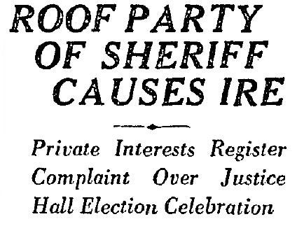 On the last day of August there was a minor scandal when it was reported that Sheriff Traeger had held a private party on the roof with boxing exhibitions, dancing and vaudeville entertainment to celebrate his landslide victory as the nominee for sheriff. The sheriff’s office insisted there’d been no wrongdoing- after all, Mrs. Traeger and “1000 of the best people in town” had attended. No one was too outraged, and Traeger was elected to the second of his three full 4-year terms in November.