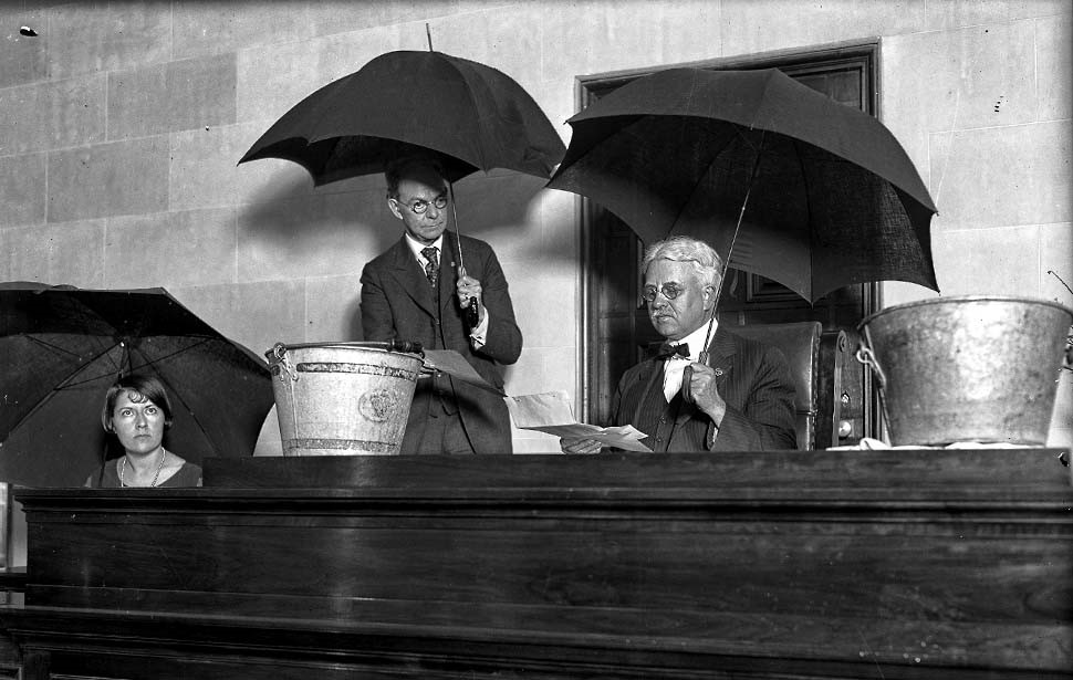 There would be many reports of leaks within the Hall of Justice, but they weren’t usually this literal. The gilded ceiling of Superior Court Judge Hardy’s courtroom began leaking on the afternoon of April 16, 1926. At first the judge called for umbrellas and carried on, but as the deluge worsened court had to be dismissed. The source was later traced to a backed up grease trap in the jail kitchen on the 13th floor.