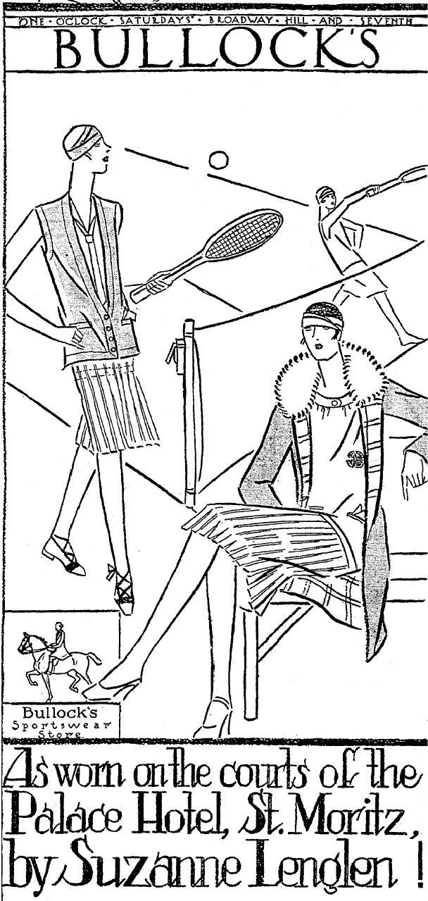 The French called her La Divine, or The Goddess. Suzanne Lenglen dominated women’s tennis from 1919 to 1926, the year she turned professional. As well known for her fashion sense as her game, in December she came to Los Angeles with her former rival, Mary K. Browne, who had also just turned pro, to play an exhibition at the Olympic Auditorium.