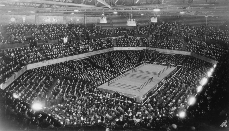 Built in anticipation of Los Angeles hosting the 1932 Summer Olympics, the “Brown Palace” at 18th St. & Grand Ave. opened August 5, 1925. It was owned by the Los Angeles Athletic Club, who hosted statewide amateur boxing competitions here that drew large crowds. Joe Levy managed the professional side of things every other Tuesday until Jack Doyle took over in 1927, after which Olympic held fights every Tuesday night.