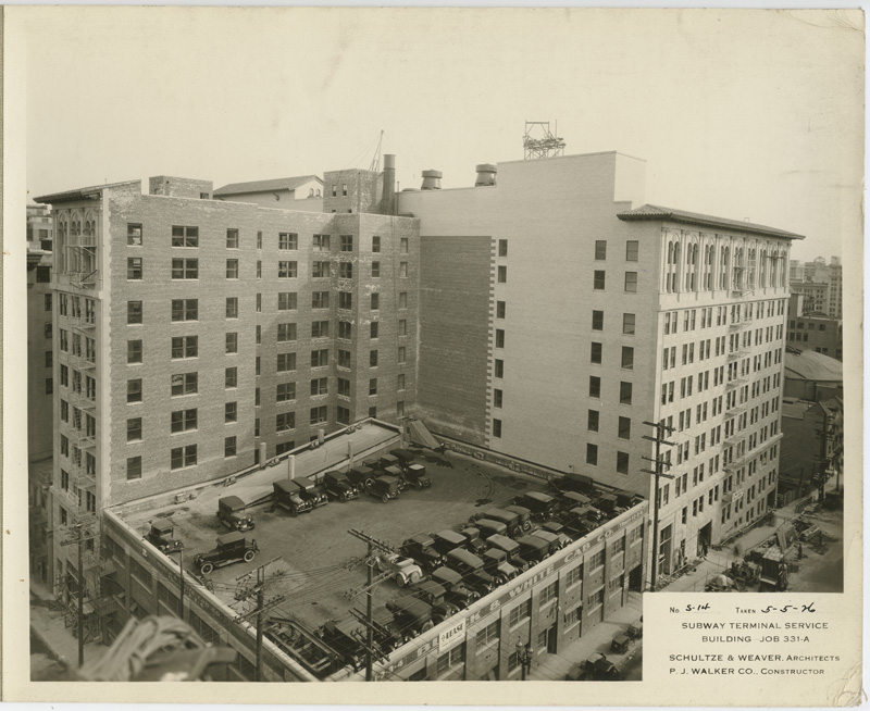 As of 1926 Los Angeles could boast one more thing it had that New York had: a subway. Sure, it was only about a mile long, but it was a subway. It started from 417 S. Hill St.- far below the Pacific Electric Railway’s 12-story terminal designed by Schulte & Weaver, architects of the Biltmore Hotel.