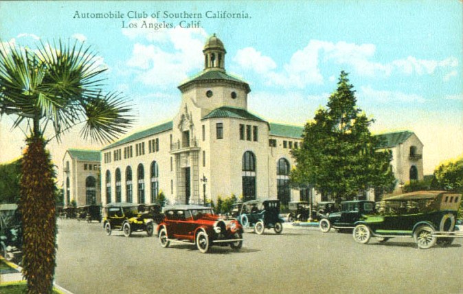 The Automobile Club of Southern California was founded in 1900. It moved to its Spanish-Colonial Revival-style headquarters at Figueroa St. & W. Adams Blvd, in 1923.