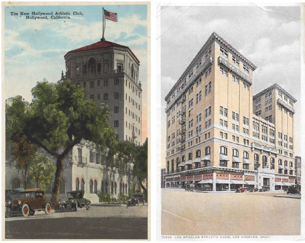 The 1924 Hollywood Athletic Club on Sunset Blvd. and the 1912 Los Angeles Athletic Club at Seventh & Olive streets.