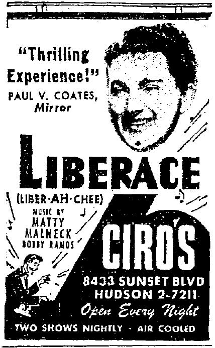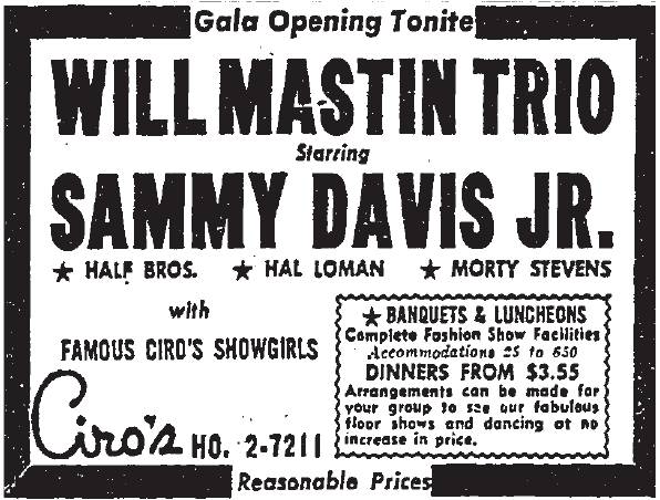 Many of the acts who appeared at Ciro’s were also popular in Las Vegas.