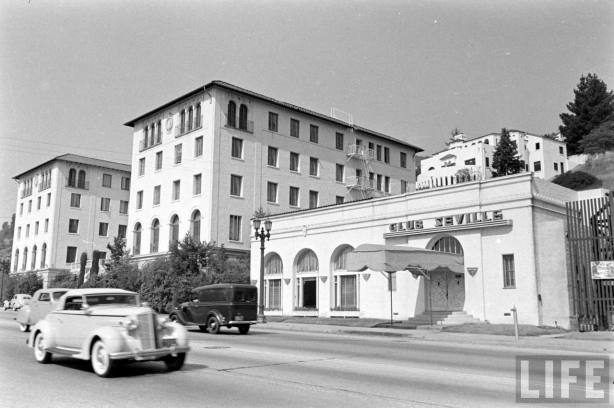 8433 Sunset as Club Seville c. 1937. That’s the Coronet Apartments next door at 8439. Life.