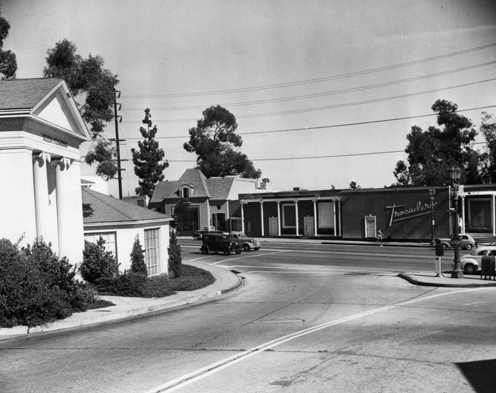 The original Café Trocadero building was one of four similar Colonial-style retail structures designed by Edwin Berstrom, completed in October 1925 when this area was known as Sherman.