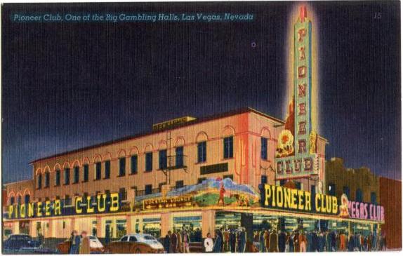Postcard view of the Pioneer Club in the 1940s, before the addition of the famous “Vegas Vic” sign.