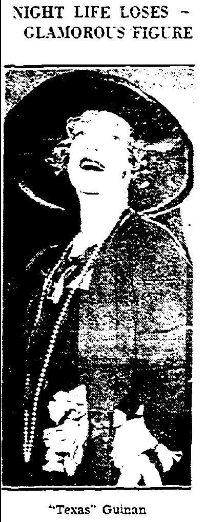 By July 1928, Texas was running the Salon Royal when she was included in a sweeping federal indictment of some 138 Volstead Act violators along Broadway’s “Great Wet Way” after a series of raids ordered by Assistant U.S. Attorney Mable Walker Wildebrandt. Guinan was released on $1000 bail.