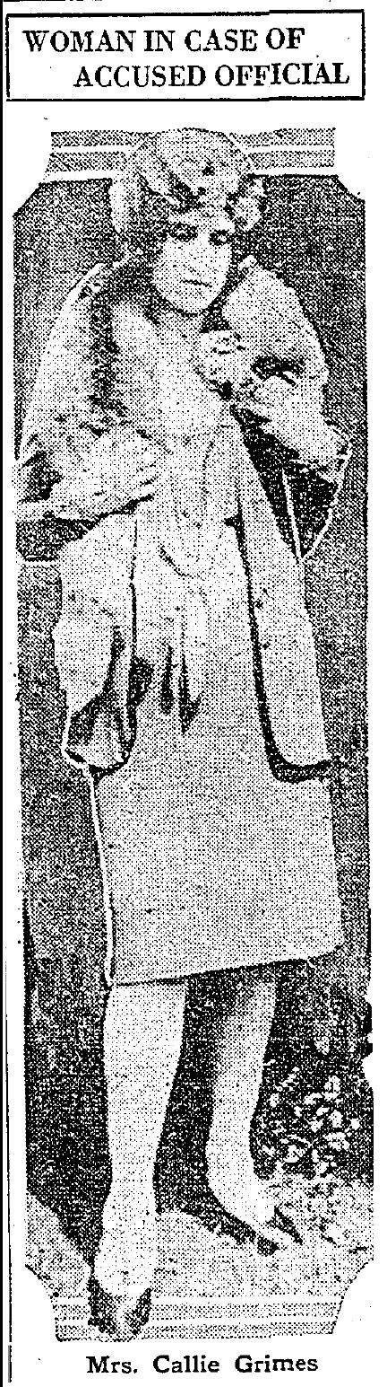 Callie Grimes the “puzzle woman” in the Jacobson case, arrested days after telling the Grand Jury police and underworld figures conspired to frame the councilman in 1927. LAT 11-15-1928.