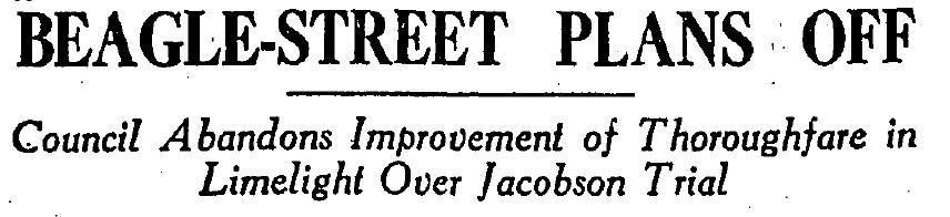 The Beagle Street improvement plan (which actually did exist) was another order of business to come up, on August 30. The Council voted against it.