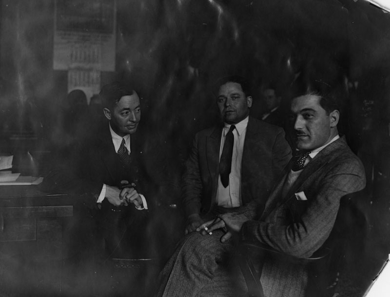 Syndicated press photo of Ardito and Pupillo with their attorney during the 1929 Augie Palumbo murder trial. LAPL