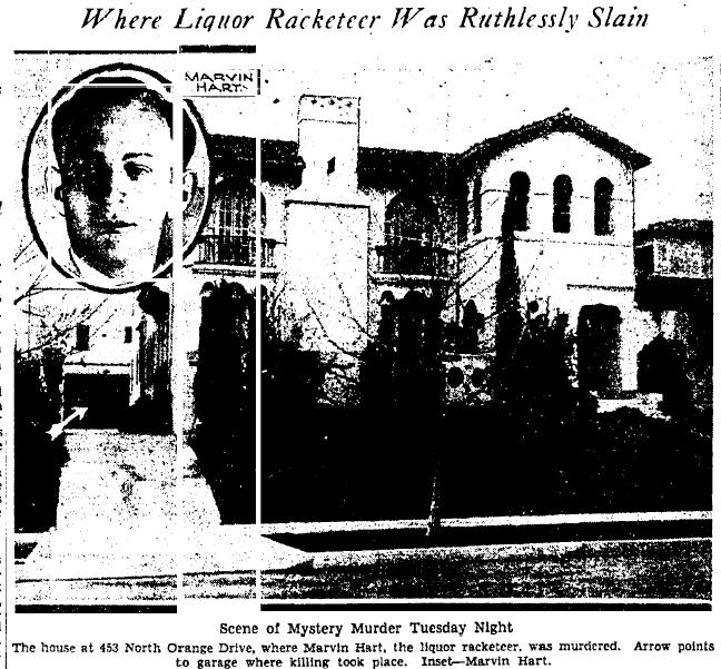 A few nights later, on December 22, 1931, Marvin Hart was shot to death as he stepped out of his car in the garage of 453 N. Orange Dr. Police initially theorized that Hart was threatening to “put the finger on” his eastern liquor partners. The case went unsolved.