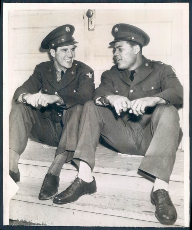 Then the U.S. entered World War II and shortly after both fighters were inducted into the Army. In 1942 Louis and Conn fought each other in an exhibition, but the title fight rematch would have to be put on ice for the duration.