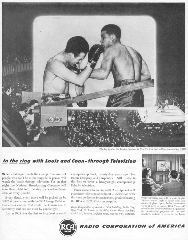 In 1921, RCA pioneered the use of radio for fight broadcasts for the Dempsey-Carpentier bout; in 1946 it broke new ground in televising the Louis-Conn rematch in some parts of the country on NBC Los Angeles could listen to the fight on the radio from ABC affiliate KECA.