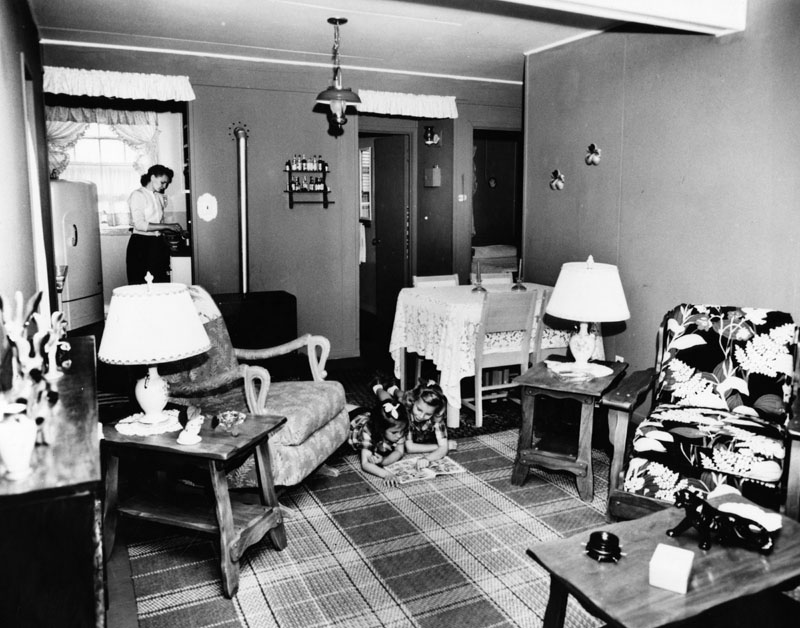 A month later, February 17, 1947, without the fanfare that marked the opening of Rodger Young Village, veteran families began moving into their new residences at Basilone Homes. A typical unit consisted of a combination living room-dining room, fully-equipped kitchen, a bedroom and a bath and rented for $27 unfurnished and $31 furnished, including utilities. The tract included a grocery store and other shops (some veteran-run), a school, playground and other facilities.