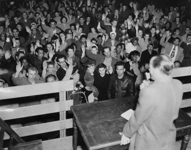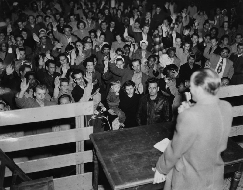 Residents of Rodger Young, who now included Korean War vets as well as veterans of World War II, protest the City’s proposed closure of Rodger Young Village in 1952.