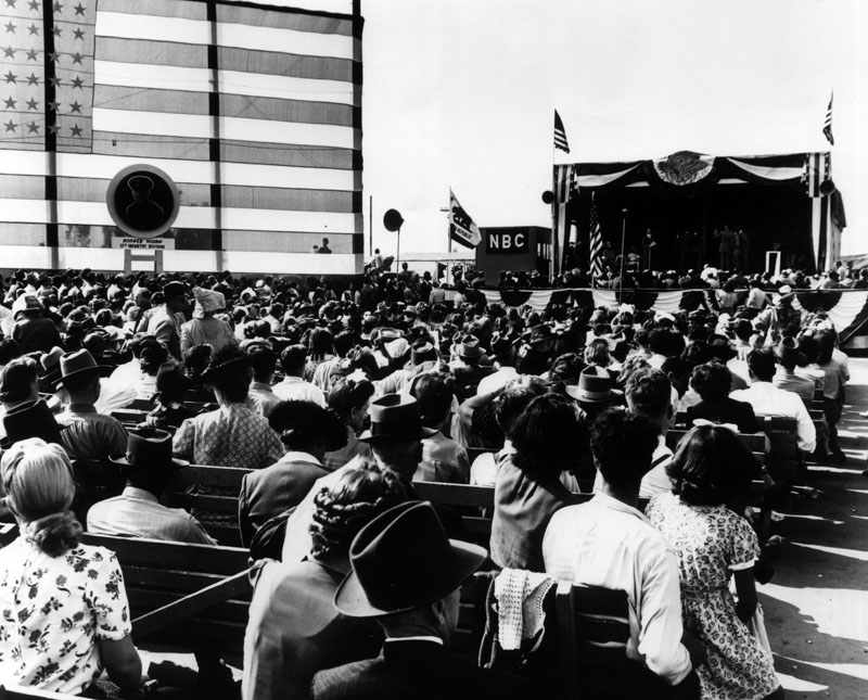 Though not all 1500 units were quite ready for occupancy, Rodger Young Village was dedicated on April 27, 1946. Young’s mother Esther came out from Baltimore to officiate at the ceremony, which were broadcast over the radio. Governor Earl Warren attended, as did General Frank Merrill of Merrill’s Marauders and a crowd of some 2000. Jack been and Phil Harris acted as Masters of Ceremony and Bette Davis gave a dramatic reading. It was said to be the largest such veteran’s housing project in the U.S. at the time.