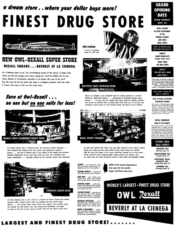In September 1945, Rexall-United Drug Co., the largest in the world, announced that it was moving its headquarters from Boston to Los Angeles.