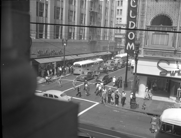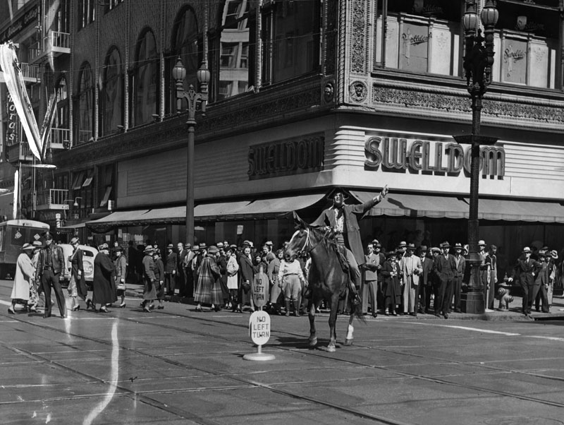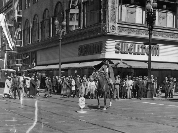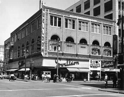 For years, Harry S. Goldberg’s loyal lady customers followed their favorite shop as it grew along with Los Angeles, making a steady progression down Broadway until it reached the northwest corner of Sixth, where it would remain. With Silverwood’s men’s shop on the northeast corner and Mullen & Bluett men’s shop (on the ground floor of the Walter P. Story Building) on the southeast corner, Swelldom claimed the northwest as “the women’s corner.”
