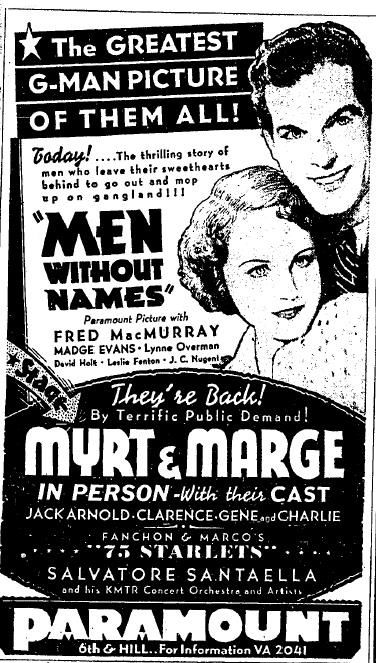 Scheuer called the next release, Men Without Names (originally tiled Federal Dick), with Fred MacMurray and Madge Evans the “best of the new crime cycle,” which was starting to peter out. J. Edgar Hoover praised Hollywood for its depictions of law enforcement officers in these films.