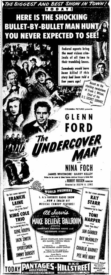 The Undercover Man debuted on April 12, 1949. Featuring Glenn Ford as treasury agent Frank Warren, quietly going about his work to bring down “the Big Fellow,” the story was based on the true story of Frank J. Wilson who helped put away Al Capone for tax evasion.