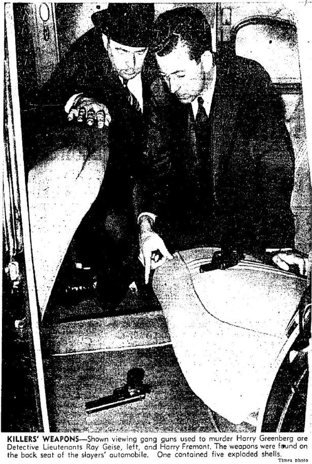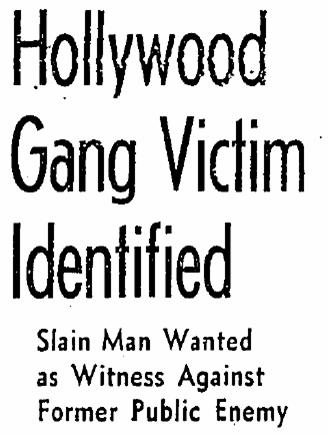 The investigation into Big Greenie’s death seemed to be going nowhere. The car used in the murder (stolen of course) was found the day after the shooting, parked in front of 1829 N. Bronson Ave. Police found two guns in the back seat, believed to be the murder weapons: a .45 automatic and a .38 revolver. They could not be traced.