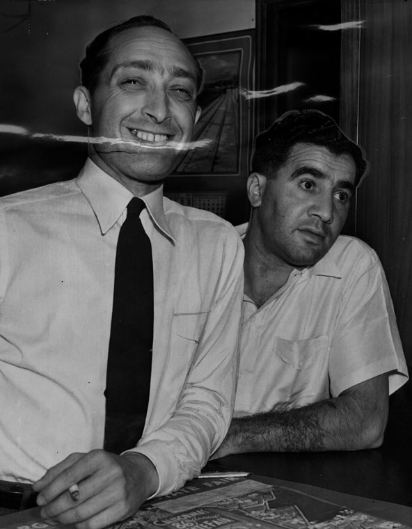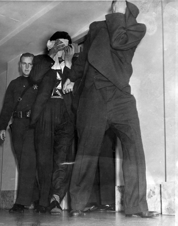 Reles in Los Angeles with US Attorney William Fleet Palmer and Asst. US Attorney Attilio di Girolano, 5-23-1941. LAPL