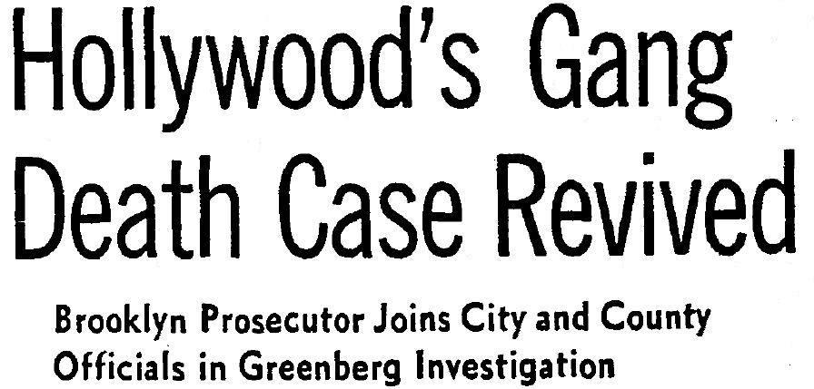 Another potential witness in the Big Greenie case was murdered in New York on July 30, 1940: Whitey Krakower, who had reportedly cased Greenie’s Hollywood home in advance of the murder. Kings Co. Assistant Kings County D.A. Burton Turkus flew to L.A. to personally hand off Tannenbaum and Reles’ statements to L.A. County D.A. Buron (not Burton) Fitts, and stayed on to assist Fitts with his investigation.