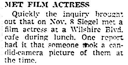 It happened on November 8, 1940. Relocated Brooklyn gangster Bugsy (also spelled Bugsie) Siegel, while in custody in the Los Angeles County jail in the Hall of Justice for suspicion of murder in the Big Greenie case, had lunch at the popular Lindy’s restaurant on Wilshire Boulevard with actress Wendy Barrie. The event was said to have been captured by a “candid camera” photographer, who went to the newspapers with the information. The Los Angeles Examiner broke the scandal wide open, reporting that Siegel had made at least 18 such excursions- sanctioned by jail doctor Benjamin Blank (who knew Siegel socially) and escorted by Deputy Sheriff J.E. Pasco’ which lasted 4 to 6 hours each and generally included a lunch stop (1).