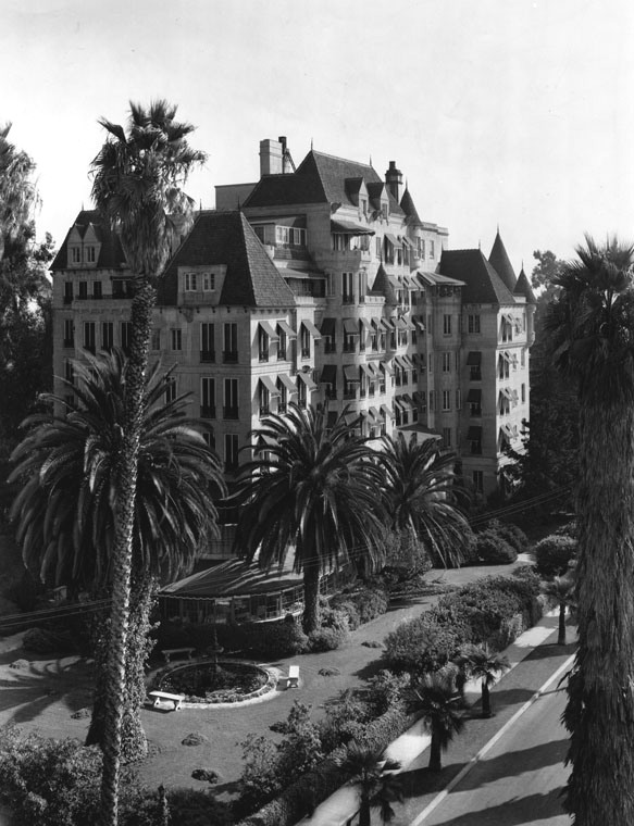 Though The Barclay was still standing (and remains extant today), in the film the action takes place at the c. 1905 Alvarado Hotel in MacArthur Park.