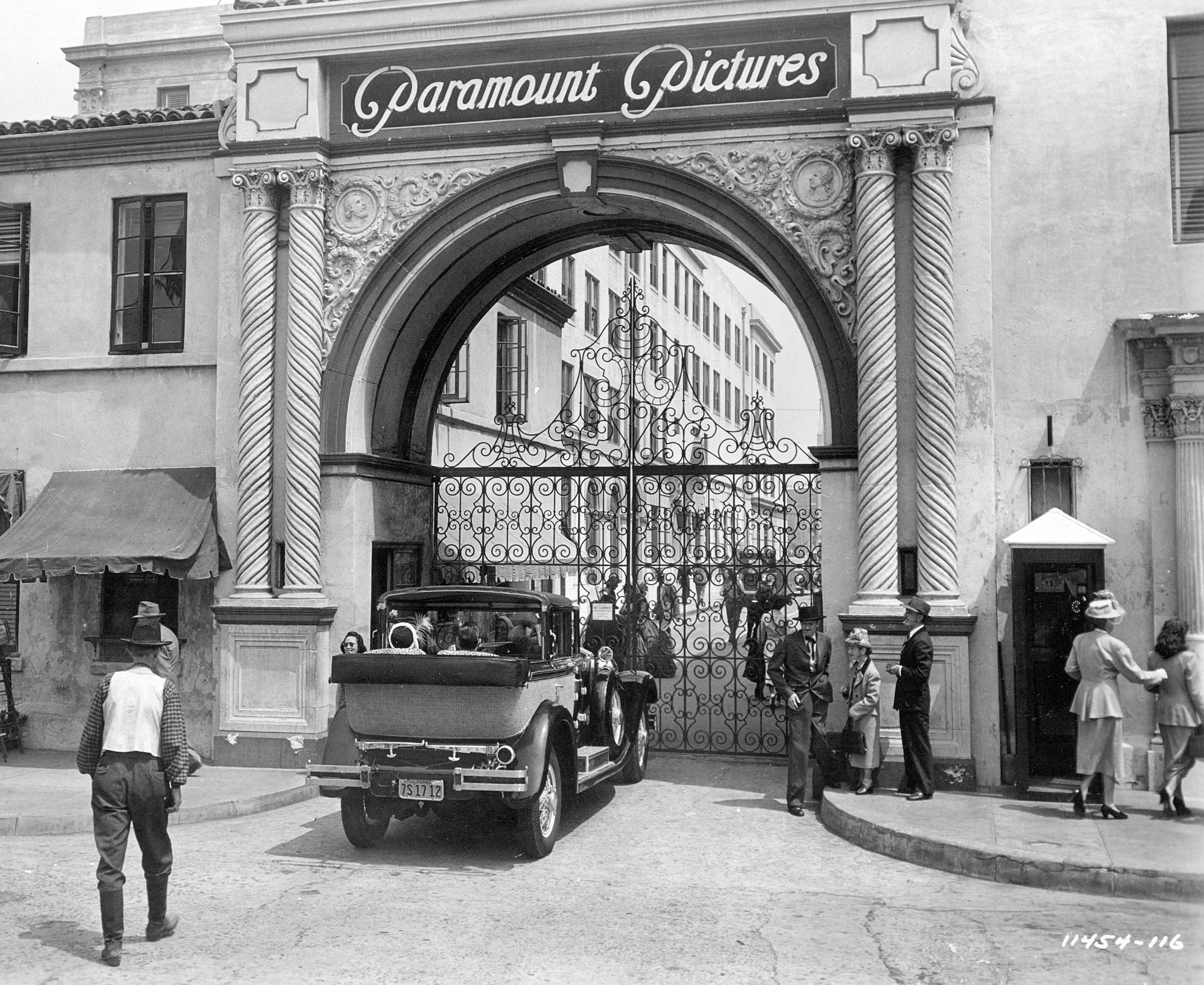 The entrance to Paramount studios as seen in Sunset Boulevard (1950), made by Chandler’s former writing partner Billy Wilder, who bears a noted resemblance to the novel’s fictional Sheridan Ballou. The guard station is to the left of the gates.
