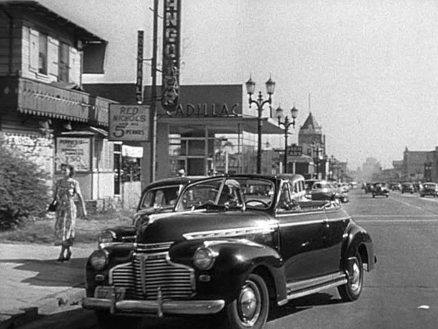 Mal Granger (Edmond O’Brien) outside The Hangout cocktail lounge, 1440 N. Vine Street, where Red Nichols and his 5 Pennies were appearing. IN the film it’s the bookmaker’s headquarters. The tower of the former Willard’s Market, built by ex-Heavyweight boxing champion Jess Willard, can be seen in the distance.