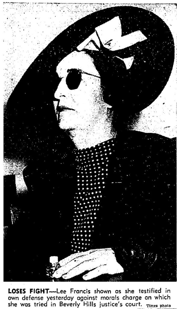 Lee Francis was the madam of multiple brothels in Los Angeles under Charles Crawford and his successors. Almost all that is known about her, or believed that is known about her, is information that came from Francis herself and is not reliable. The following is based on my own original research.