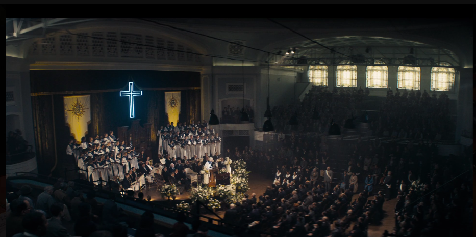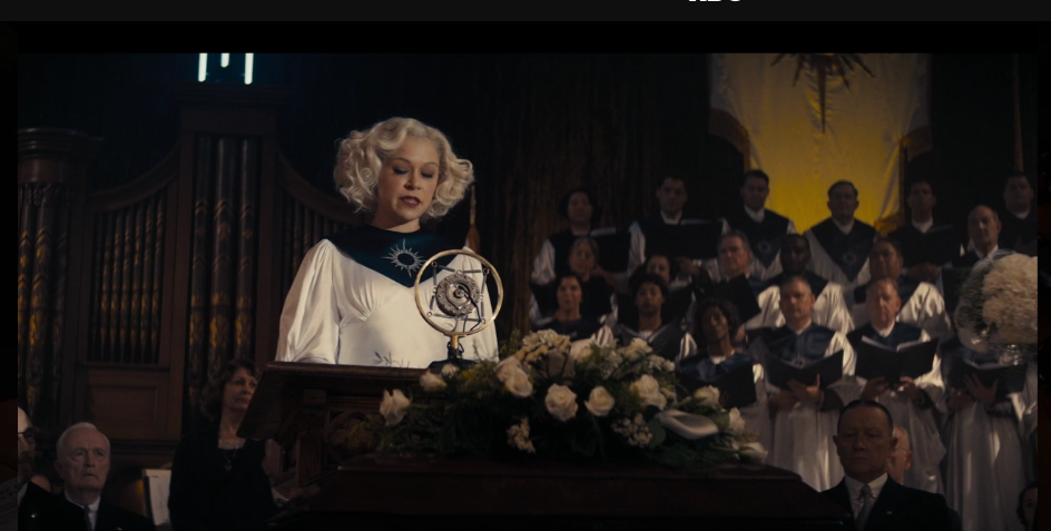 Sister Alice McKeegan, played by Tatiana Maslany, radio evangelist of the Radiant Assembly of God, is clearly based on Aimee Semple McPherson of the International Church of the Foursquare Gospel, headquartered in Echo Park. Sister Aimee was pioneering in her use of radio to reach more parishioners. Her disapearance in 1926 caused a massive scandal. You can read my previous post on Sister Aimee here.