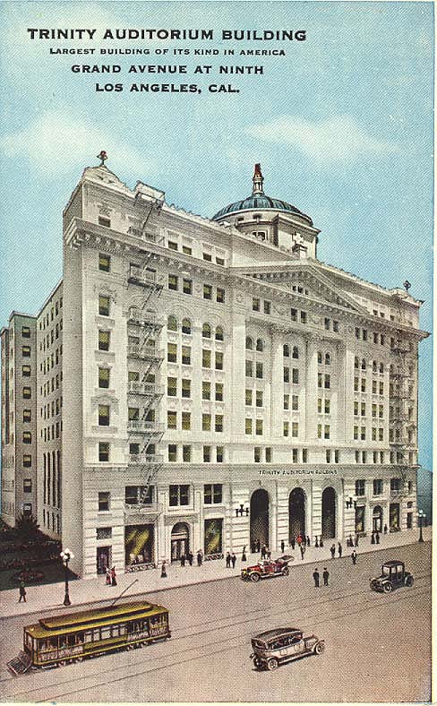Most of the interior scenes were filmed in the Trinity Auditorim aka the Embassy Hotel on S. Grand Avenue, originally built for Trinity Methodist Church in 1913. The church was unable to meet its financial obligations and had to move out in 1919.