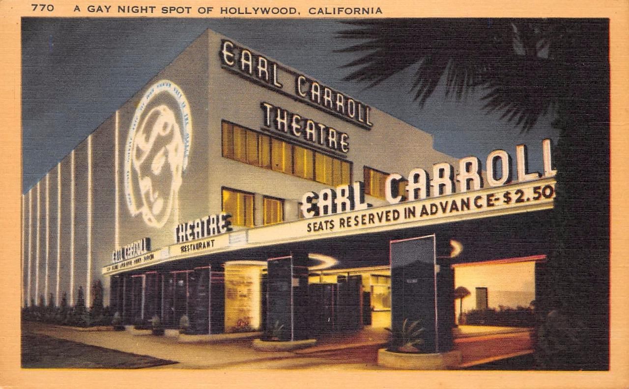 The Earl Carroll Theater and Restaurant opened at 6230 Sunset Boulevard, on the south side of Sunset between Vine St. and El Centro on December 26, 1938.