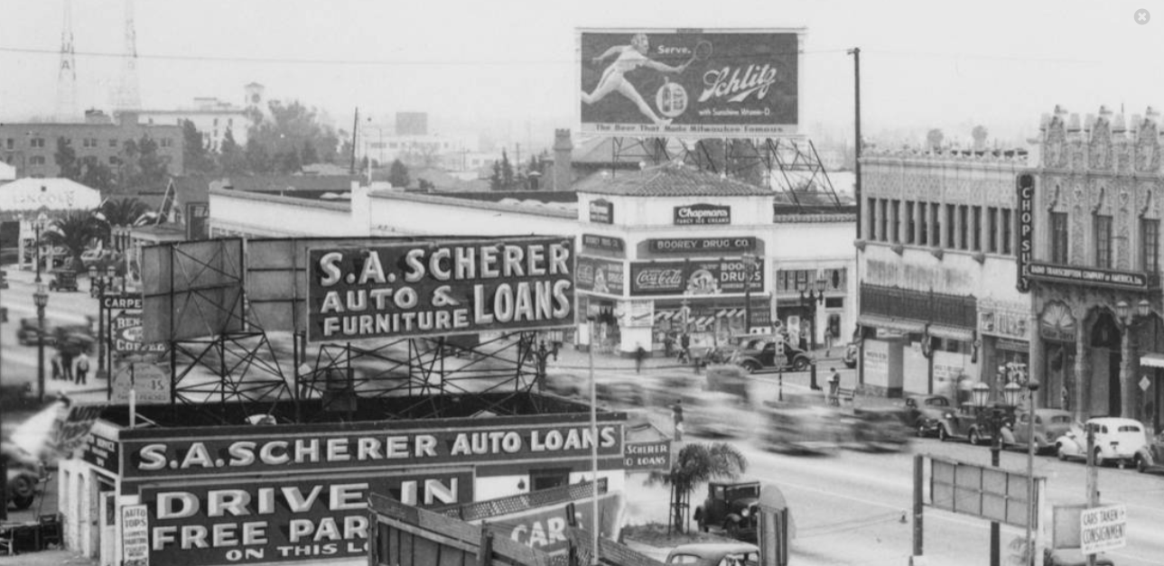 Brothers Frank and Walter Muller’s expansive automobile service business was at 6380 Sunset Boulevard on a 5-acre parcel that the brothers later told reporters their father Jacob had purchased in 1893 for $1500. It extended from Sunset to DeLongpre Avenue and along the south side of Sunset Boulevard from Morningside Court on the east to Cahuenga Boulevard on the west, as Ivar did not yet cut through Sunset.