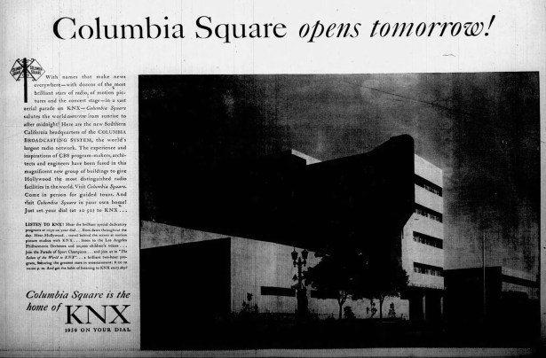CBS moved its television operations to its huge new CBS Television City in November 1952, KNX moved to new quarters in 2005. Columbia Square was recognized as a Los Angeles Historic-Cultural Monument in 2009.