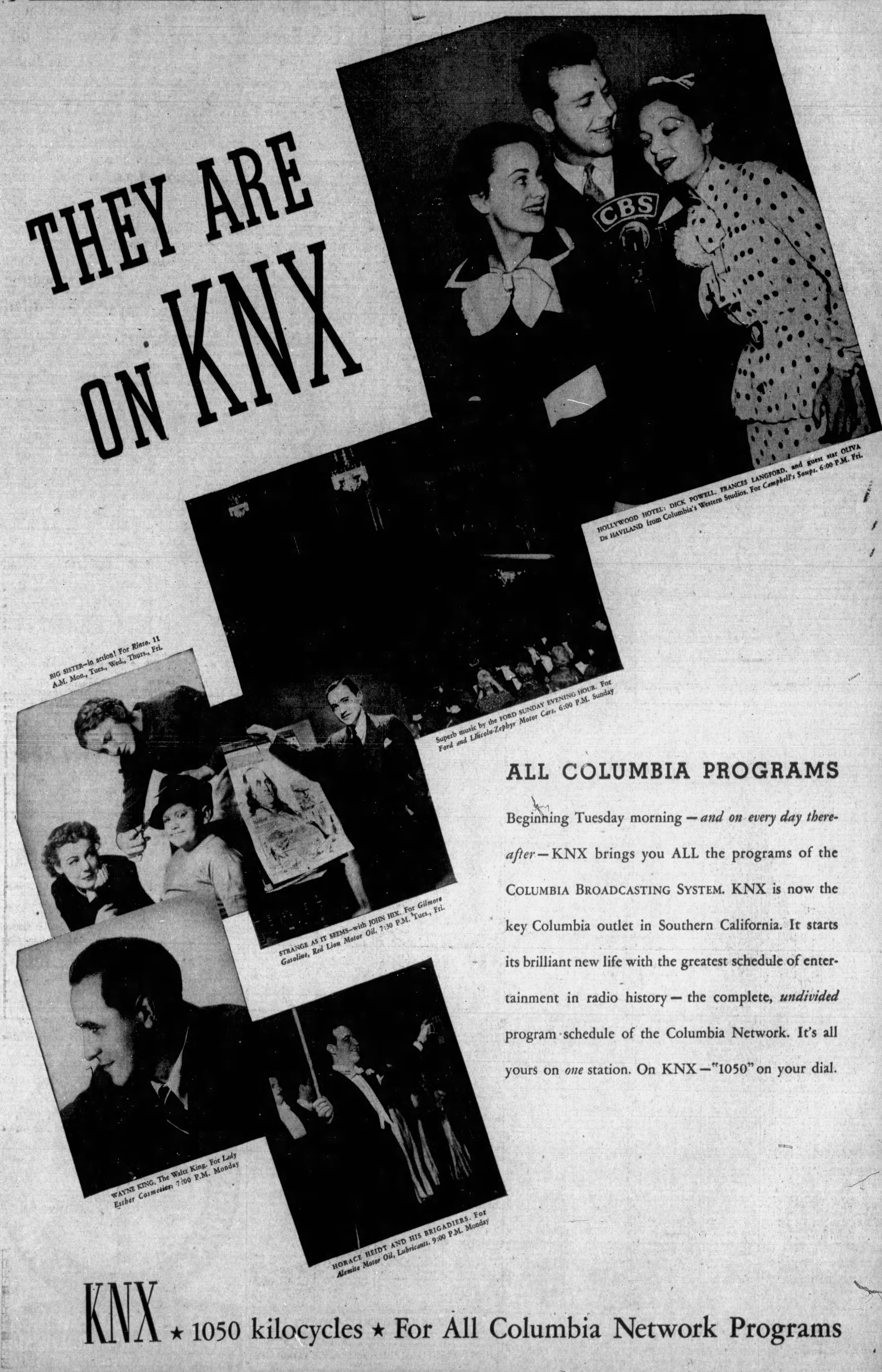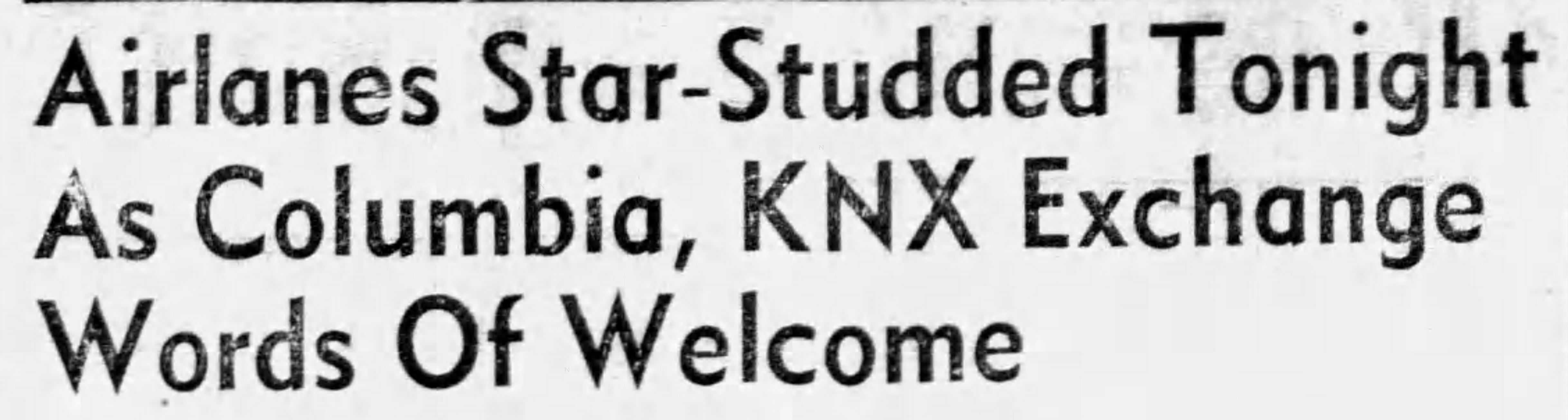 In April 1936, CBS purchased local KNX radio station, which operated out of a building at 5939 Sunset Boulevard. Beginning December 29, 1936, all CBS programs, previously heard locally over KHJ, would be broadcast by KNX. The new arrangement was celebrated with a 2-hour special on January 2, 1937, the first hour broadcast from New York, the second half from the Music Box theater in Hollywood.