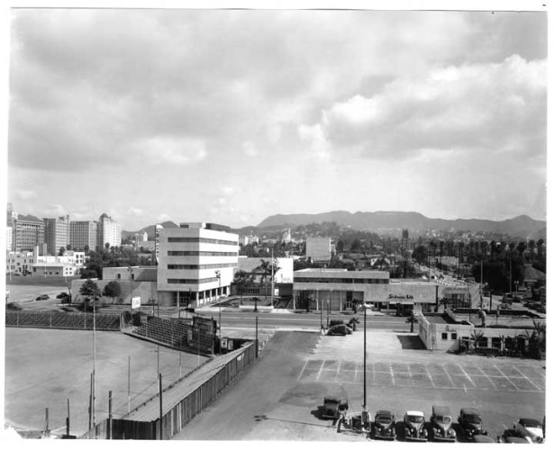 Before Fiedler came along, the lot remained largely vacant except for a cafe, built in 1927 at the southwest corner of Sunset and Gower, addressed as 6100 Sunset Boulevard. The unnamed baseball field at the opposite corner was active by 1934.