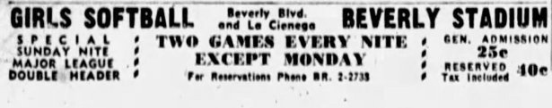 While the Sunset and El Centro location was no more, Marty Fieldler continued to operate his softball field at Fourth and Fairfax for the 1939 and 1940 seasons. As of September 1940, it was also referred to as Fiedler’s Fairfax Stadium.