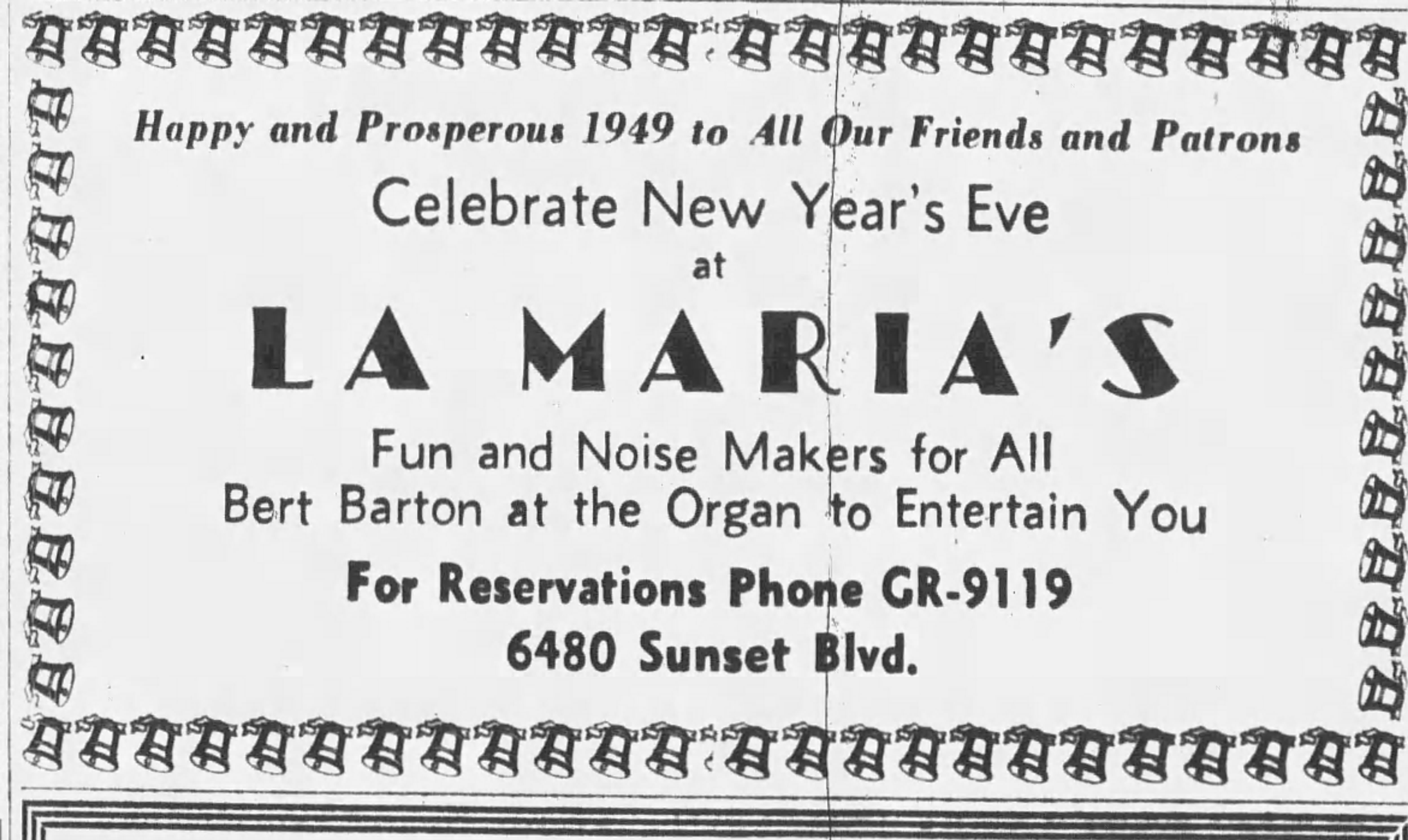 April 1948, the 6480 Travaglini’s was taken over by new management, who renamed it the La Maria.
