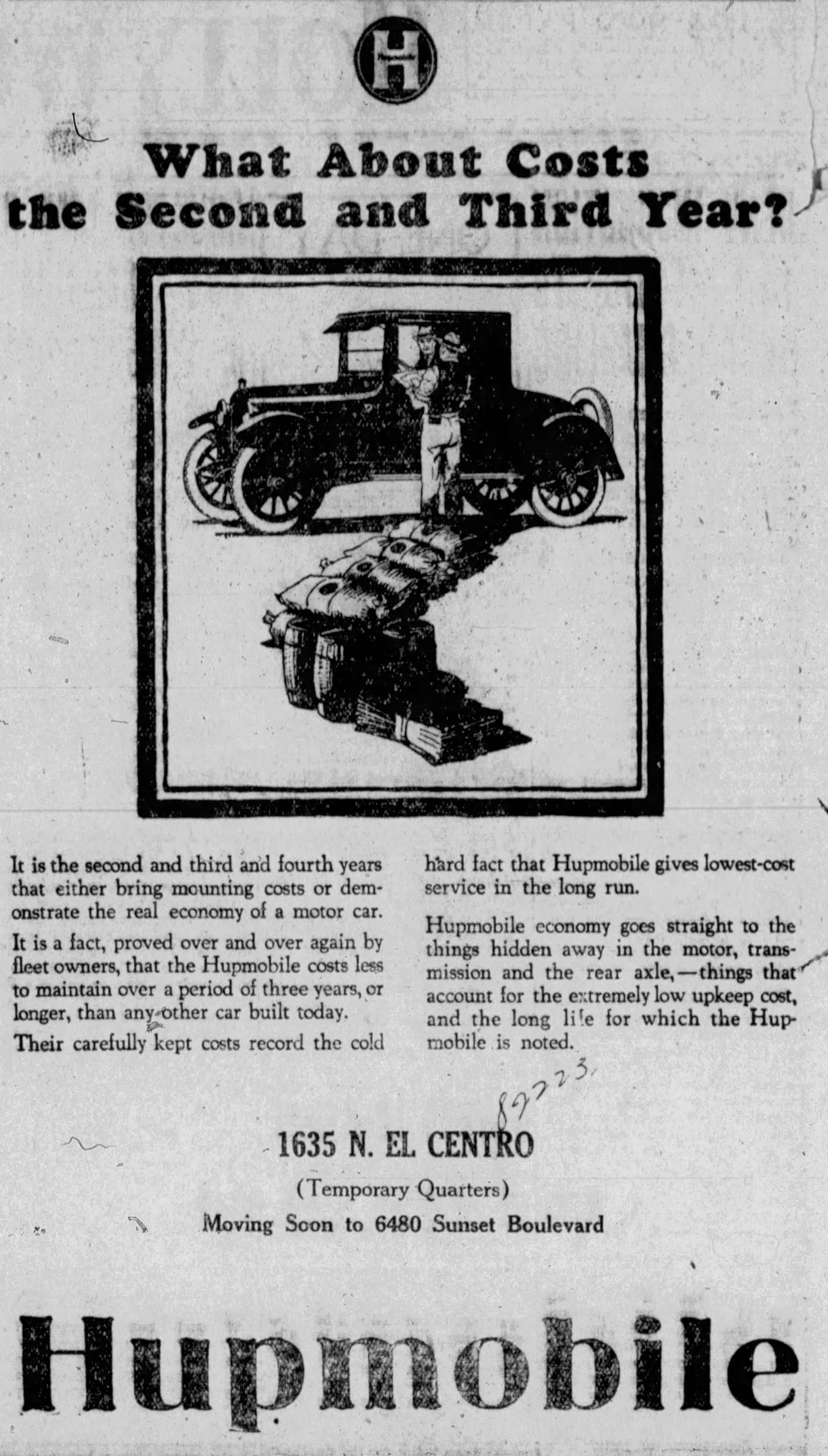 Swanson continued to sell Hupmobiles throughout most of the prosperous 1920s. In July 1929 he became the Hollywood dealer of a different luxury motor car, Pierce-Arrow. But Pierce-Arrows were a tough sell even in Hollywood post-Crash and by May 1931, Swanson was selling Graham-Paige autos and had given up 6480 to Walter Finney as of September 1931.