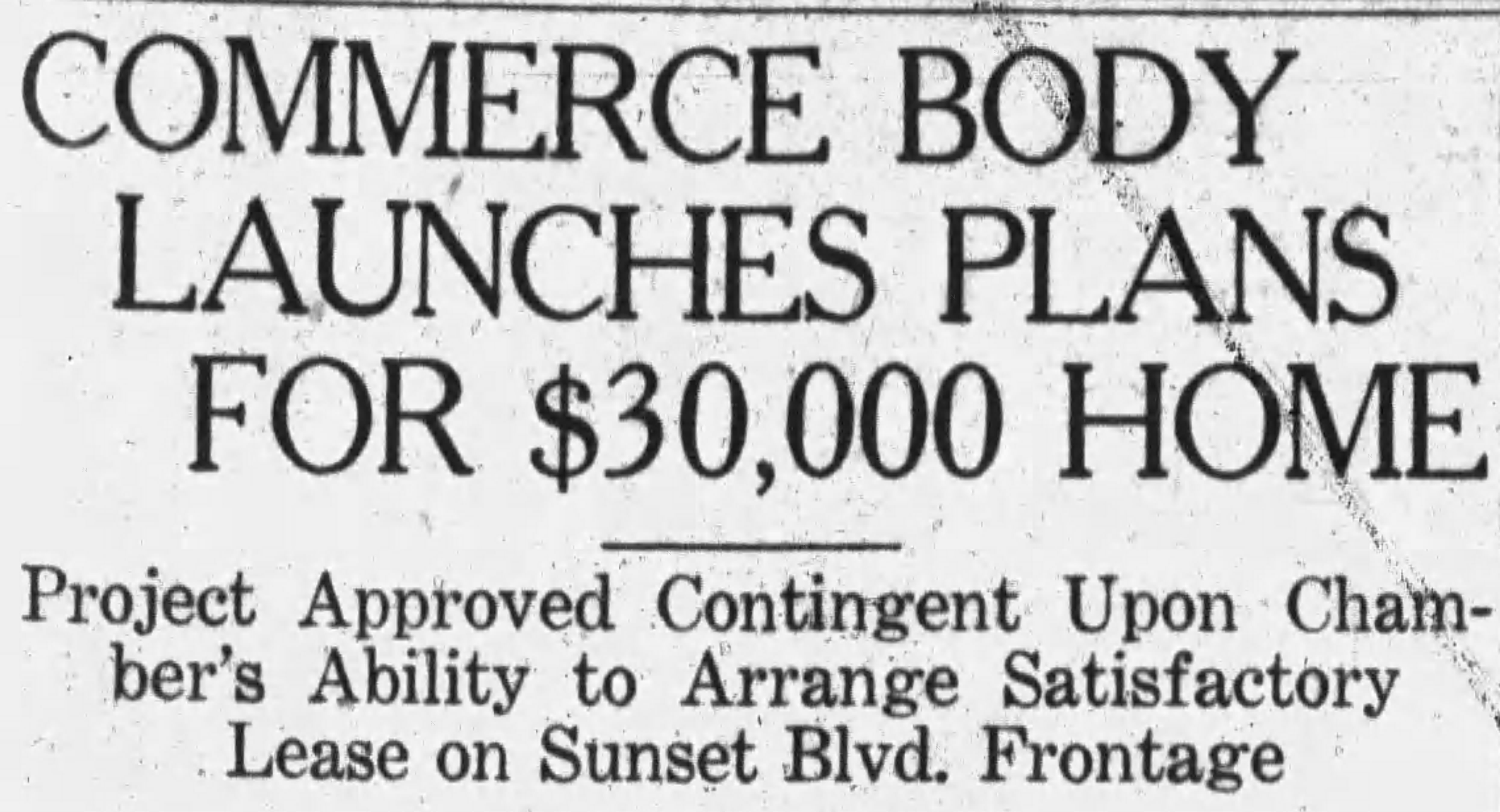 With its lease of temporary home since 1923 at 6530 Hollywood Boulevard due to expire on July 1, 1925, the group began considering whether to move to rented space in a used furniture store a few door down or possibly constructing a new building on a leased lot on Sunset Boulevard near the corner of Hudson, across the street from the new Hollywood Athletic Club. By June 1925, it had decided to proceed with a new building, which would be constructed by the Christie Realty Corporation and turned over to the Chamber at net cost.