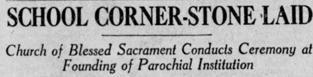 On June 18, 1923, the cornerstone was laid for the new Blessed Sacrament school.