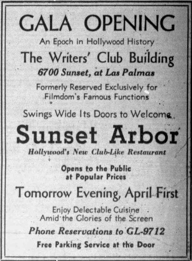 The epoch in Hollywood History was more like a blip. Sunset Arbor closed in 1938 less than 1 year into a 10 year lease. Refurbished once again, the auditorium space was used by various theater groups.
