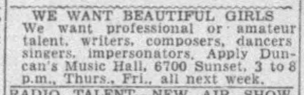 Shortly after, the sisters announced they were turning 6700 into a ye olde English-style music hall nightclub, to be called Duncan’s Music Hall. The opening was scheduled for “about” December 28. 1940.